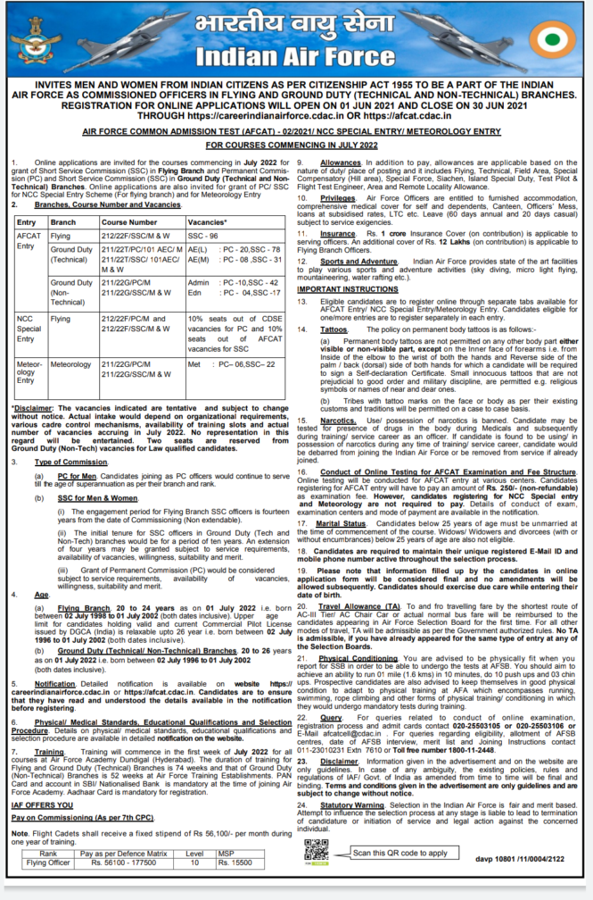 ಹುದ್ದೆಗಳ ವಿವರ :ಎಎಫ್ ಸಿಎಟಿ – 306, ಮೀಟಿಯಾರಲಜಿ ಎಂಟ್ರಿ-28